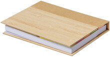Poznámkový blok potažený bambusem se 70 listy, 25 lepicími papírky a 125 popisovači stránek (v 5 různých barvách).