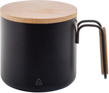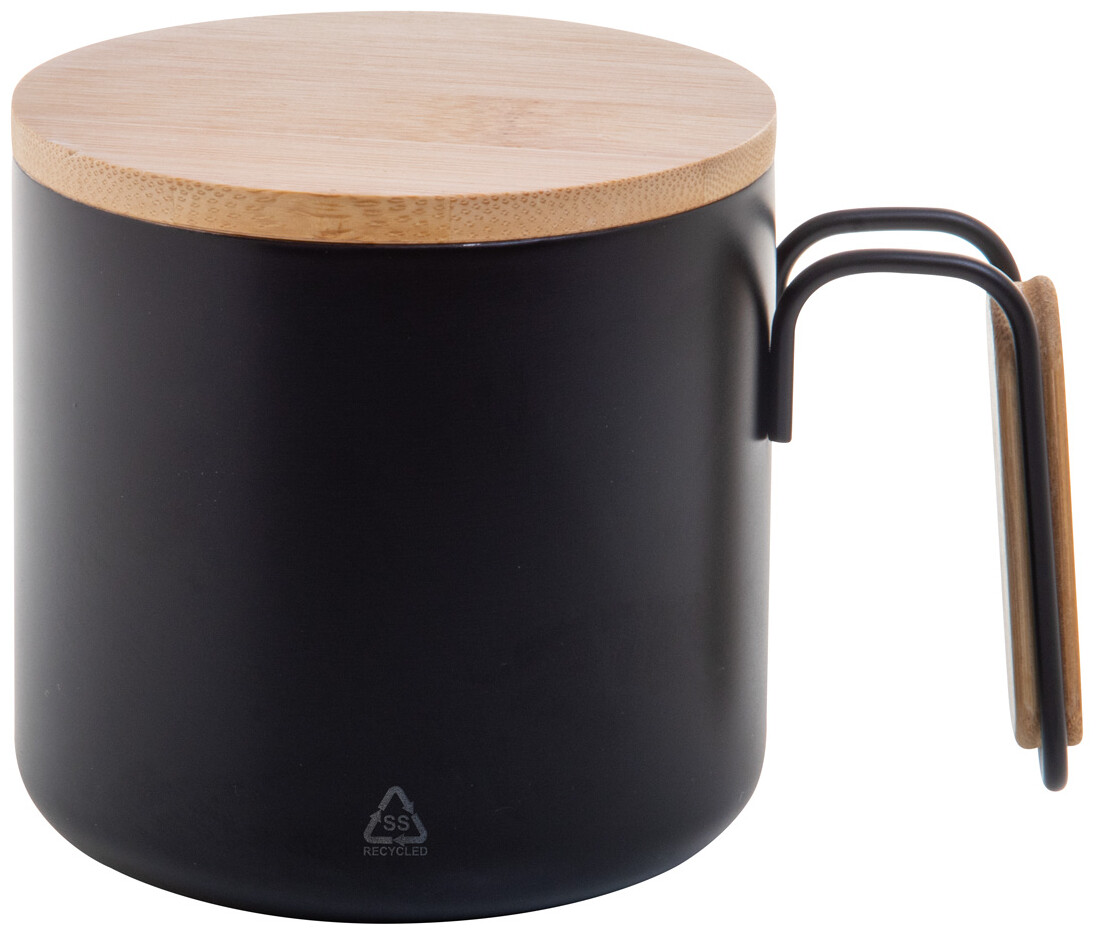 Dvoustěnný termo hrnek z recyklované nerezové oceli s bambusovým víčkem a rukojetí. 300 ml.