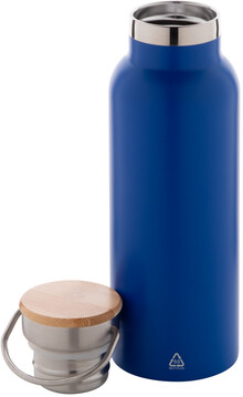 Dvoustěnná vakuově izolovaná termoska z recyklované nerezové oceli s bambusovým víčkem. 500 ml.