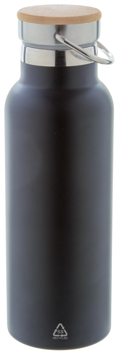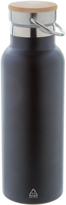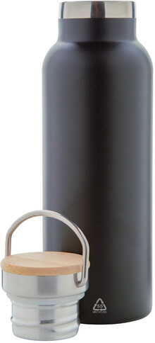 Dvoustěnná vakuově izolovaná termoska z recyklované nerezové oceli s bambusovým víčkem. 500 ml.