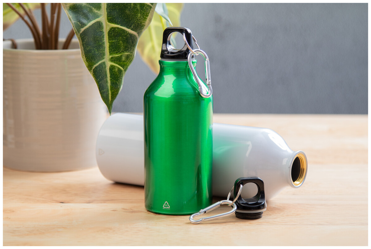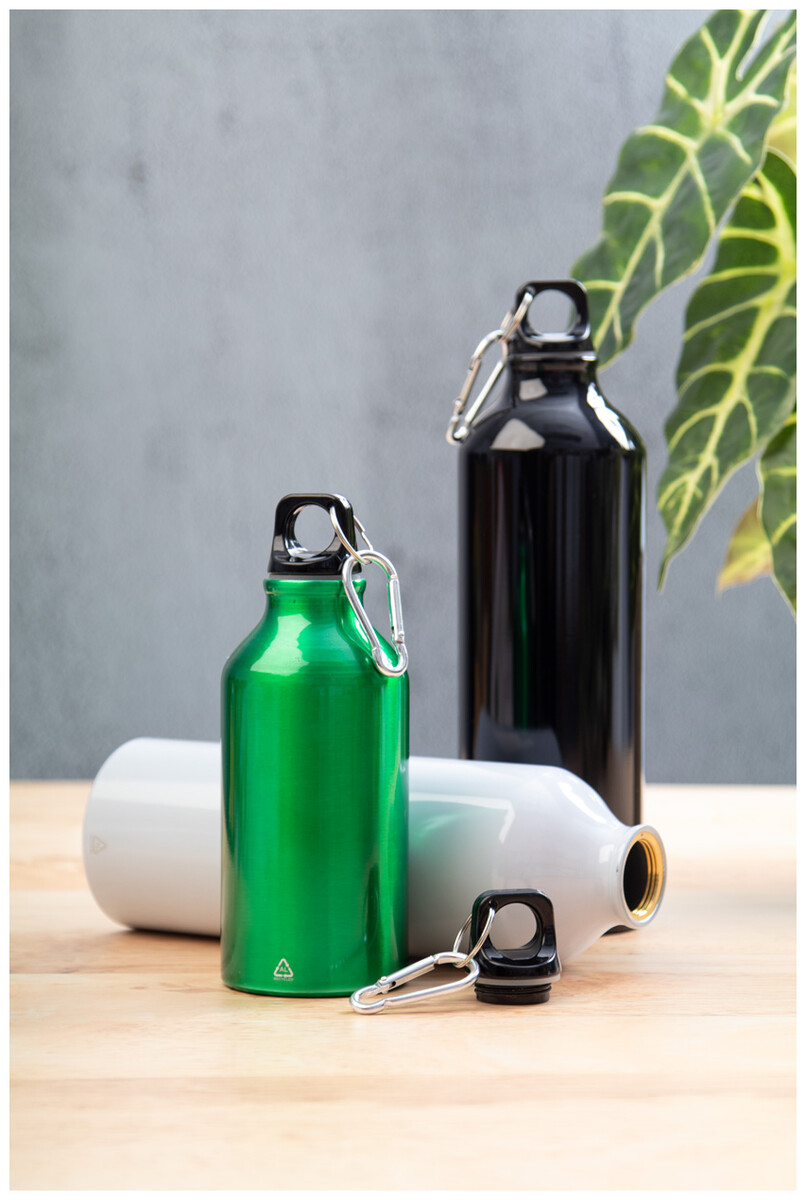 Láhev z recyklovaného hliníku s karabinou z recyklovaného hliníku, 750 ml.