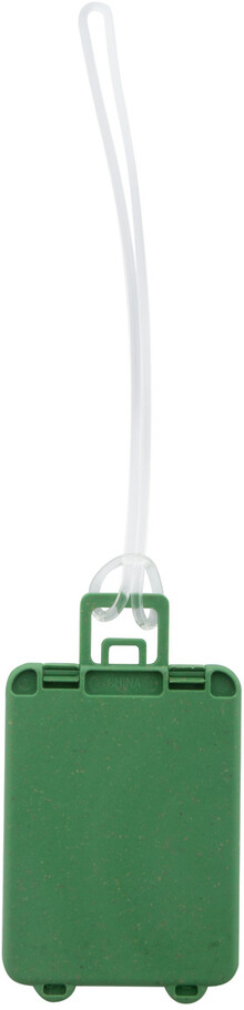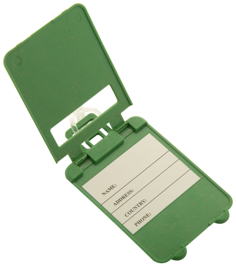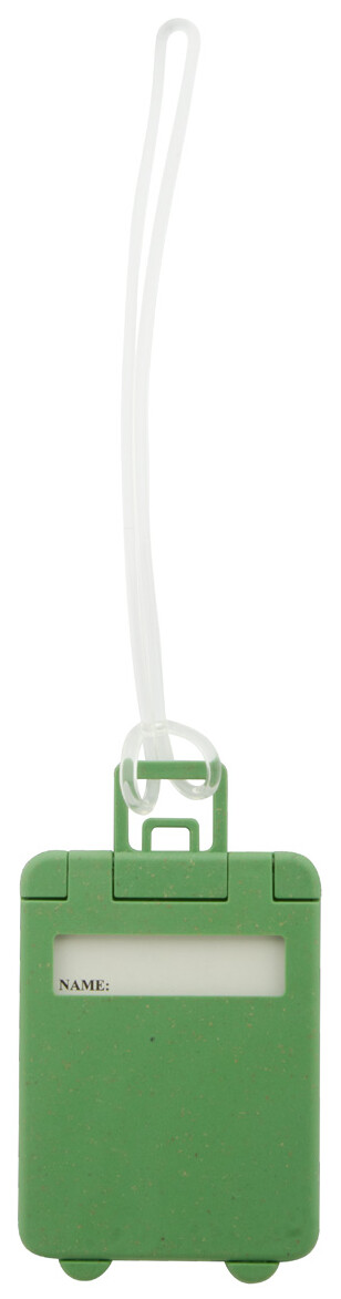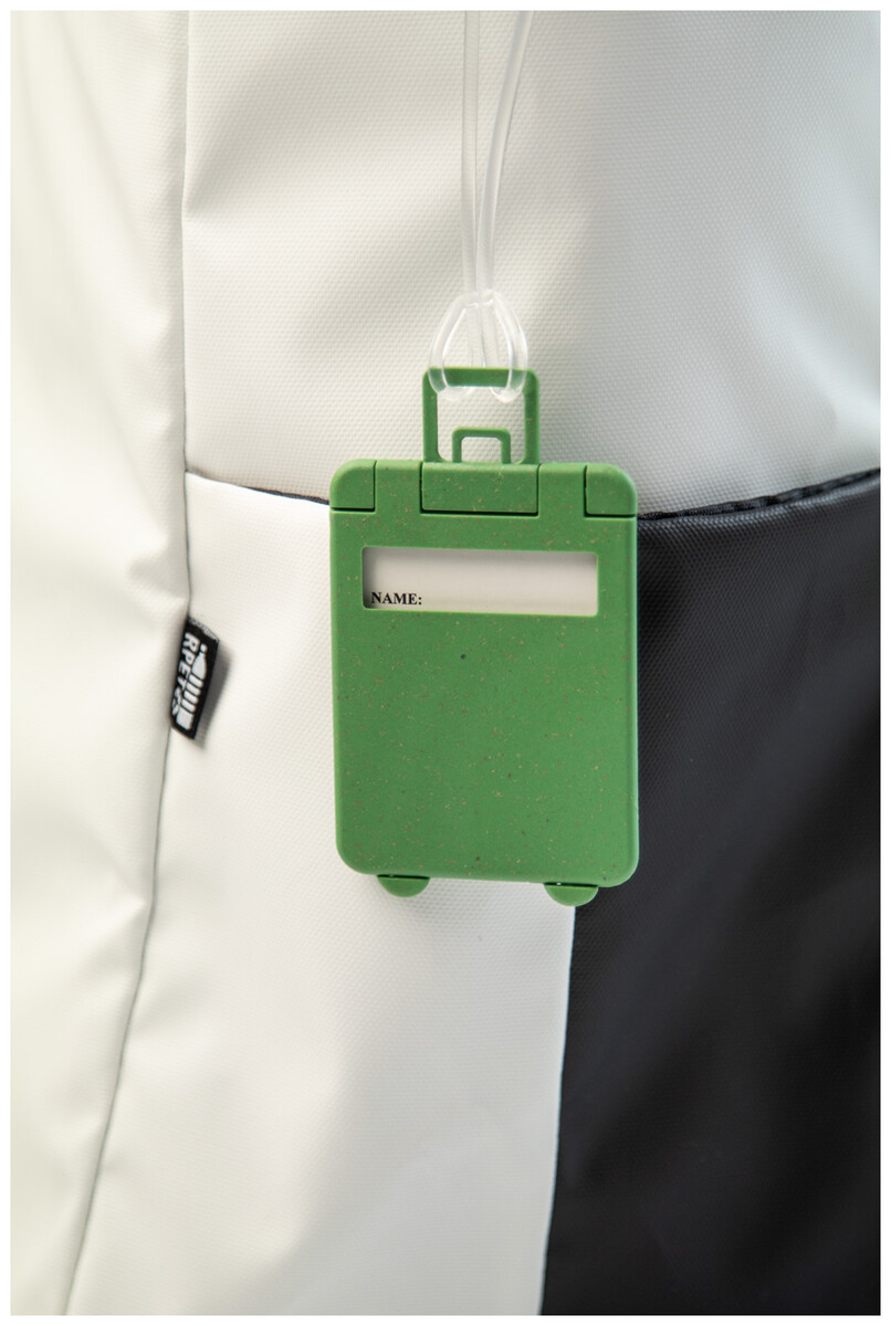 Ekologická plastová visačka na zavazadla z pšeničné slámy ve tvaru kufru, s elastickým páskem.