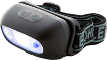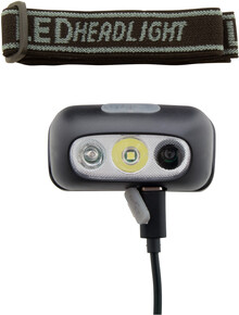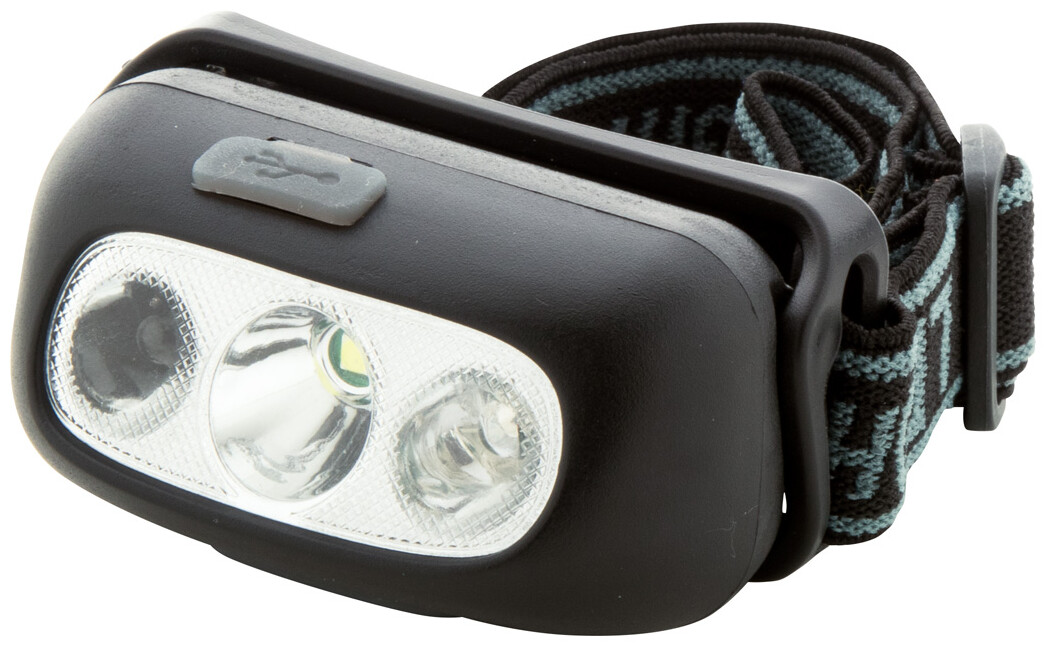 Plastová čelovka s vestavěnou USB dobíjecí baterií (400 mAh) a nastavitelným popruhem. S vysoce výkonným COB světlem a dvěma snímači pohybu. S vysokým, nízkým a světelným režimem citlivým na pohyb. Včetně USB nabíjecího kabelu.
