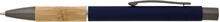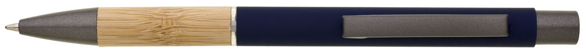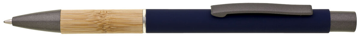 Kovová propiska s hnědo-černými doplňky, modrým pogumovaným povrchem a bambusovým úchopem. Náplň VO modře píšící. Kolekce SAVE THE NATURE.