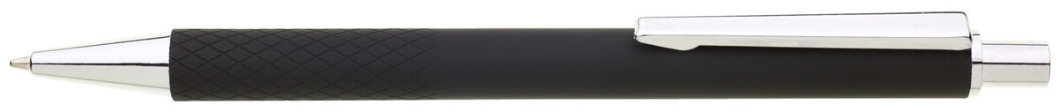 Elegantní propiska s černým pogumovaným tělem v moderním odstínu a chromovými doplňky. Náplň X20 modře píšící. Kolekce DESIGN.