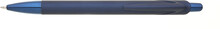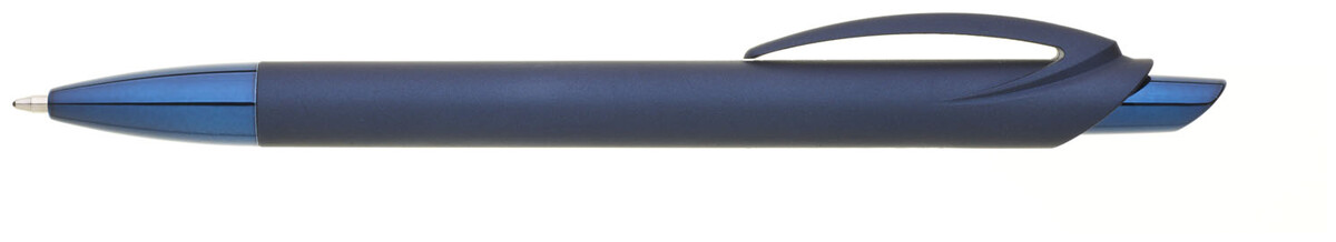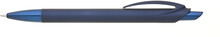 Modré plastové metalické tělo doplňují lesklé barevné doplňky. Velkoobsahová gelová náplň, modře píšící.
