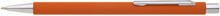 Tenká, jednoduchá propiska s oranžovým pogumovaným tělem a chromovými doplňky. Náplň X20, modře píšící.