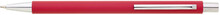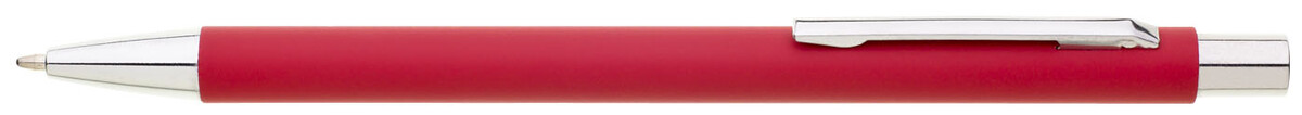 Tenká, jednoduchá propiska s červeným pogumovaným tělem a chromovými doplňky. Náplň X20, modře píšící.