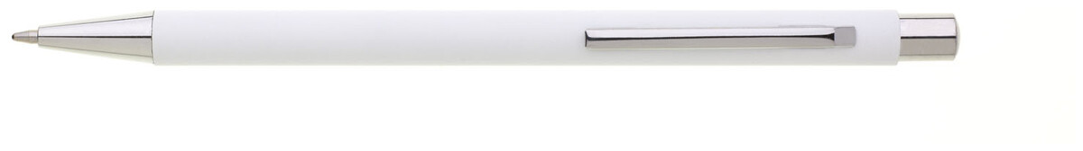 Tenká, jednoduchá propiska s bílým pogumovaným tělem a chromovými doplňky. Náplň X20, modře píšící.
