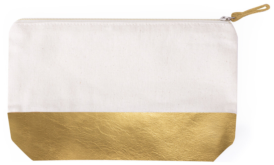 Dvoubarevná kosmetická taštička na zip z bavlny a metalické PU kůže.