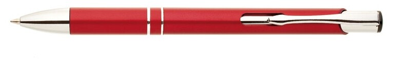 Plastové propisovací pero OIRA BLACK - červené. Pero je zdobené dvěma stříbrnými proužky. Na těle je zdobeno oválným výřezem. Pero má náplň velkoobsahovou, černě píšící.