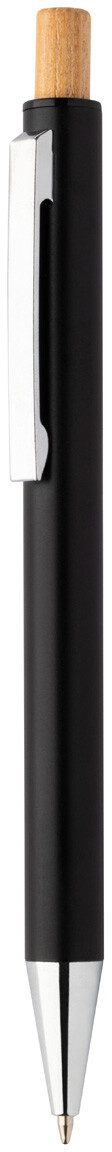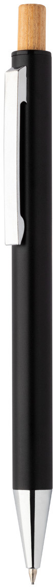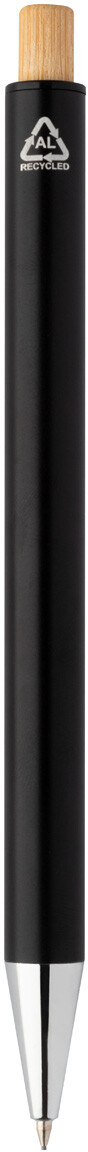 Sada pera z recyklovaného hliníku s kuličkovým perem a mechanickou tužkou s bambusovými knoflíky. S modrou náplní a 0,7 mm tuhy. V kraftové papírové krabici.