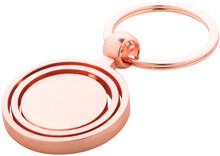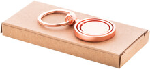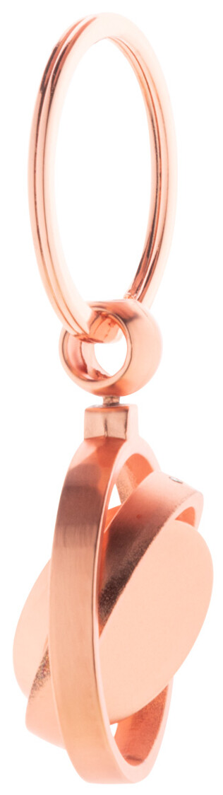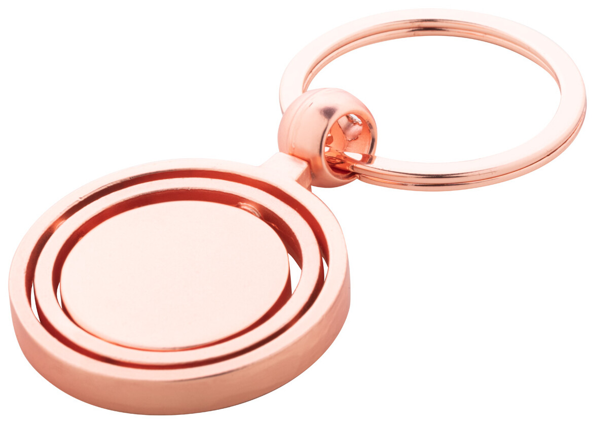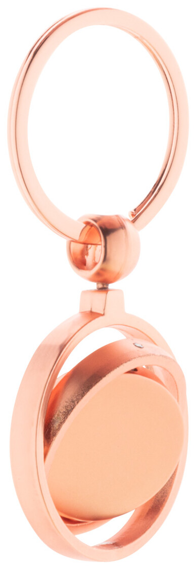 Kovový přívěšek na klíče ve zlatém provedení s otočnou vnitřní částí. V kraftové papírové krabici.