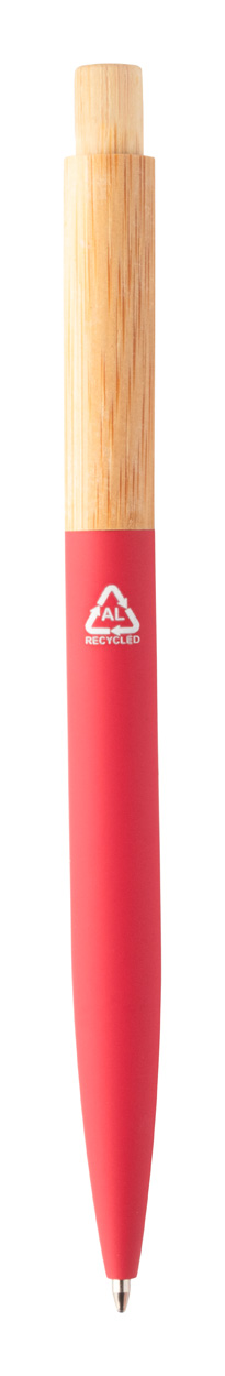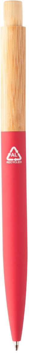 Kuličkové pero z bambusu a recyklovaného hliníku s pogumovaným povrchem a kovovým klipem. S modrou náplní.