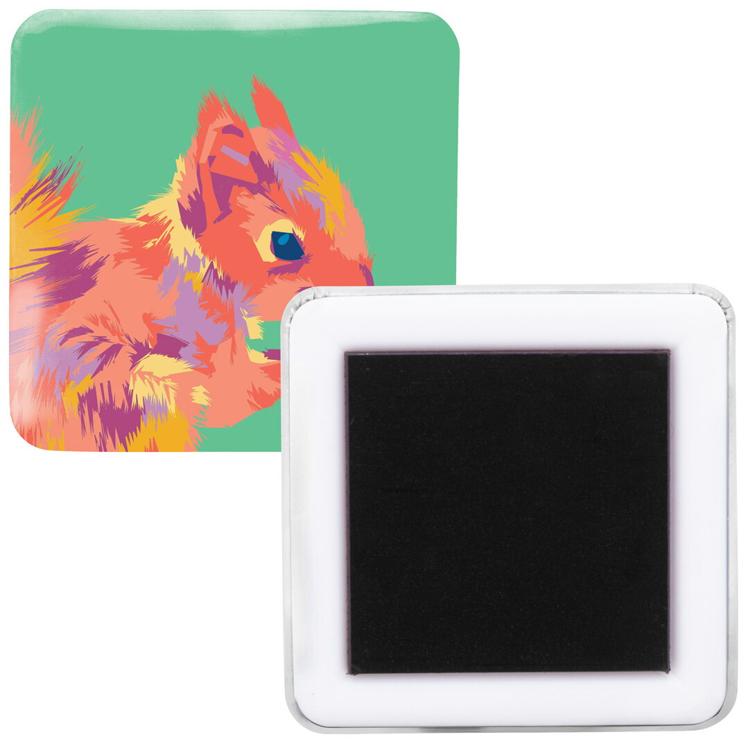 Čtvercový magnet na lednici s vlastní plnobarevně potištěnou papírovou vložkou. Cena je vč. digitálního tisku, nezahrnuje tiskovou přípravu. Min. mn.: 100 ks.