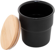 Vysoce kvalitní keramický hrnek s bambusovým víčkem. S matnou vnější a lesklou vnitřní povrchovou úpravou. 240 ml. V kraftové papírové krabici.