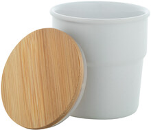 Vysoce kvalitní keramický hrnek s bambusovým víčkem. S matnou vnější a lesklou vnitřní povrchovou úpravou. 240 ml. V kraftové papírové krabici.