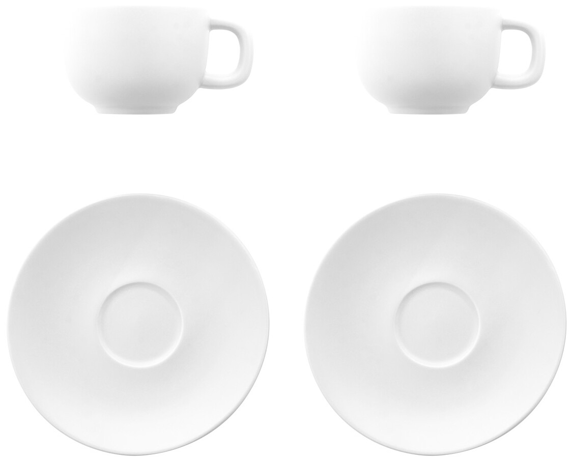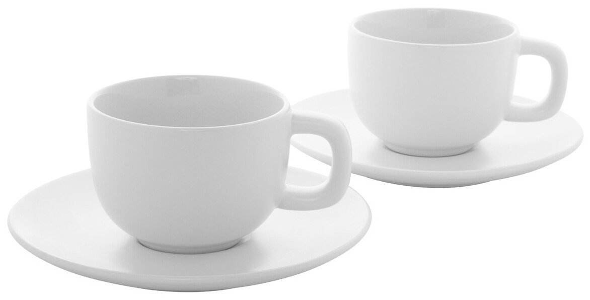 Vysoce kvalitní keramická sada šálků na cappuccino se 2 šálky a podšálky. S matnou vnější a lesklou vnitřní povrchovou úpravou. 200 ml. V kraftové papírové krabici.