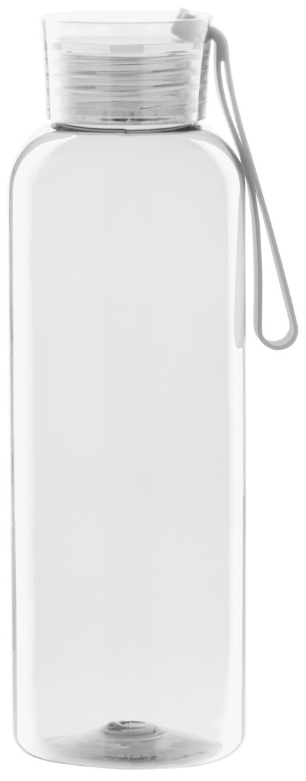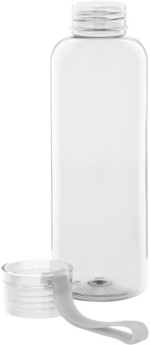 Láhev RPET s víčkem v odpovídající barvě a silikonovým popruhem, 500 ml. Nevhodné pro sycené nápoje.