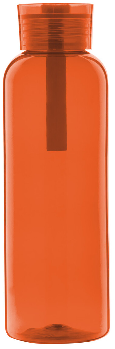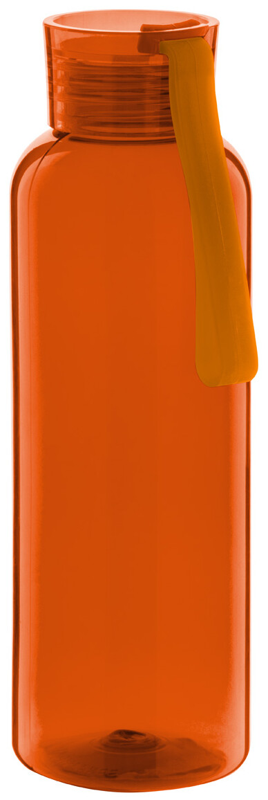 Láhev RPET s víčkem v odpovídající barvě a silikonovým popruhem, 500 ml. Nevhodné pro sycené nápoje.