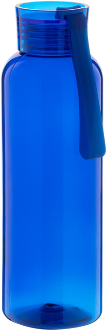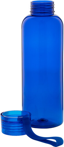 Láhev RPET s víčkem v odpovídající barvě a silikonovým popruhem, 500 ml. Nevhodné pro sycené nápoje.