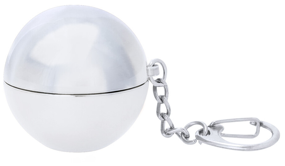 Kulatý vanilkový balzám na rty v kovovém držáku s kovovým kroužkem na klíče. S ochranou SPF15.
