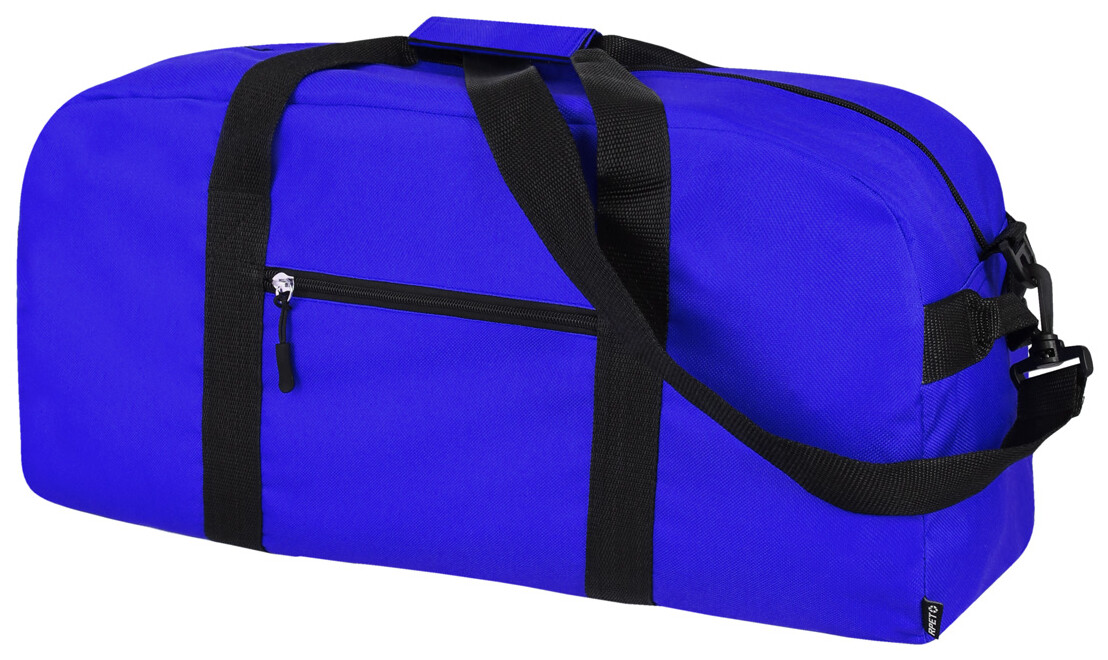 Sportovní taška RPET s hlavními přihrádkami na zip a přední kapsou, nastavitelný ramenní popruh. Polyester 600D RPET, s výrazným štítkem RPET.