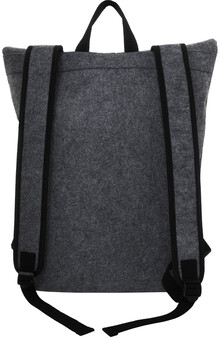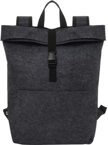 Batoh na rolování z plsti RPET s hlavní přihrádkou na přezku a přední kapsou na zip, přihrádkou na notebook (15") a polstrovanými ramenními popruhy. S výrazným štítkem RPET.