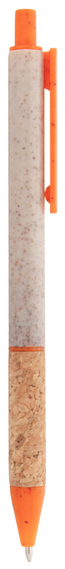 Ekologické plastové kuličkové pero z pšeničné slámy s přírodním korkem a barevnými částmi. S modrou náplní.