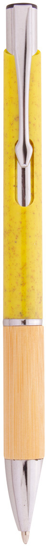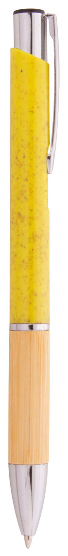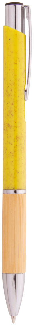 Ekologické plastové kuličkové pero z pšeničné slámy s bambusovým úchopem a kovovými částmi. S modrou náplní.