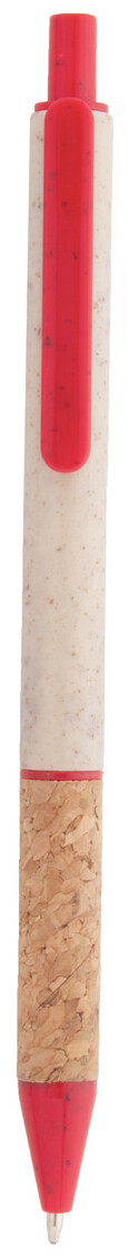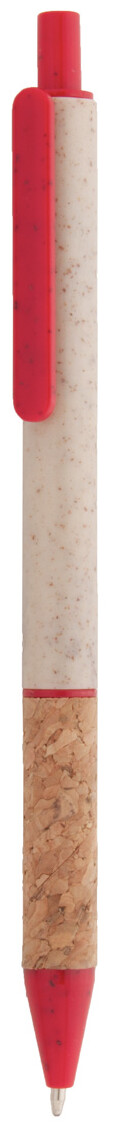 Ekologické plastové kuličkové pero z pšeničné slámy s přírodním korkem a barevnými částmi. S modrou náplní.