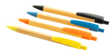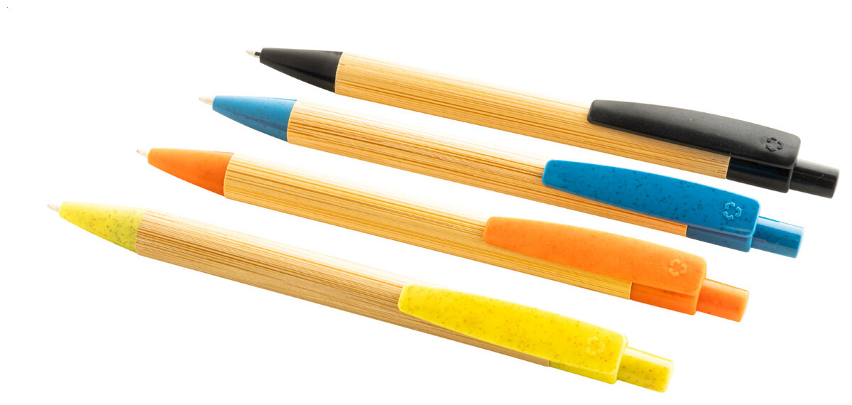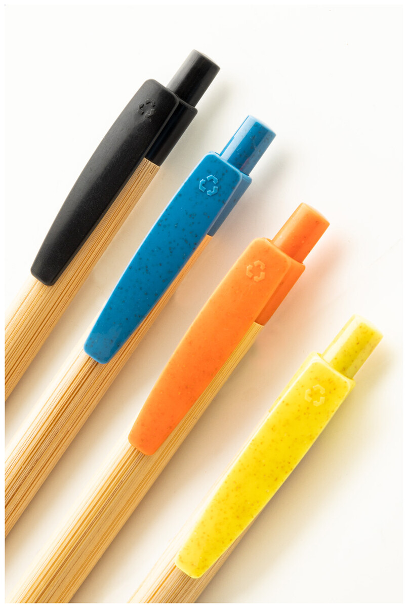 Kuličkové pero z bambusu s klipem a špičkou ze slámy, s modrou náplní.