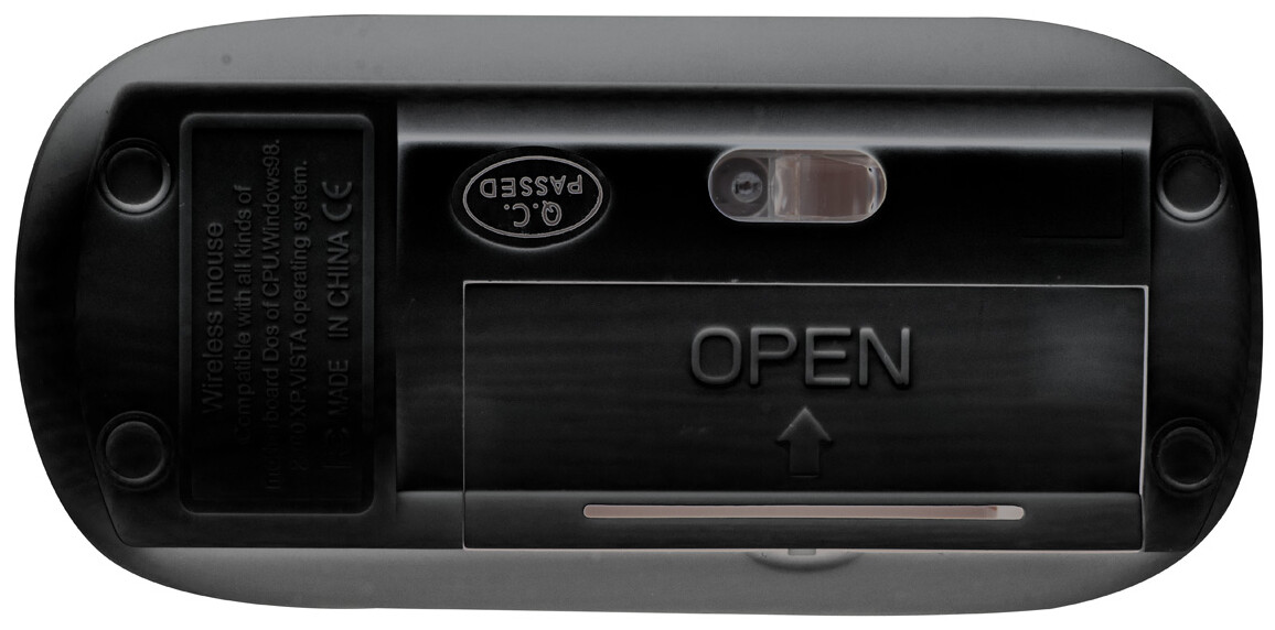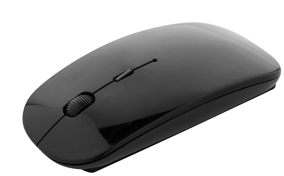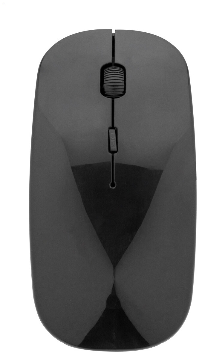 Bezdrátová plastová optická myš. Pracuje se 2 bateriemi AAA, dodáváno bez baterií. Toto zařízení používá nešifrované bezdrátové RF připojení; proto není možné provozovat více kusů ve stejné místnosti (nebo v okruhu 10 metrů).