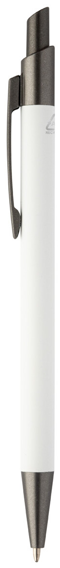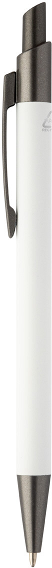 Kuličkové pero z recyklovaného hliníku s pogumovaným tělem a kovovými částmi. S modrou náplní.