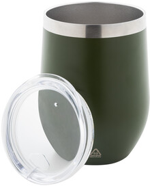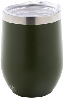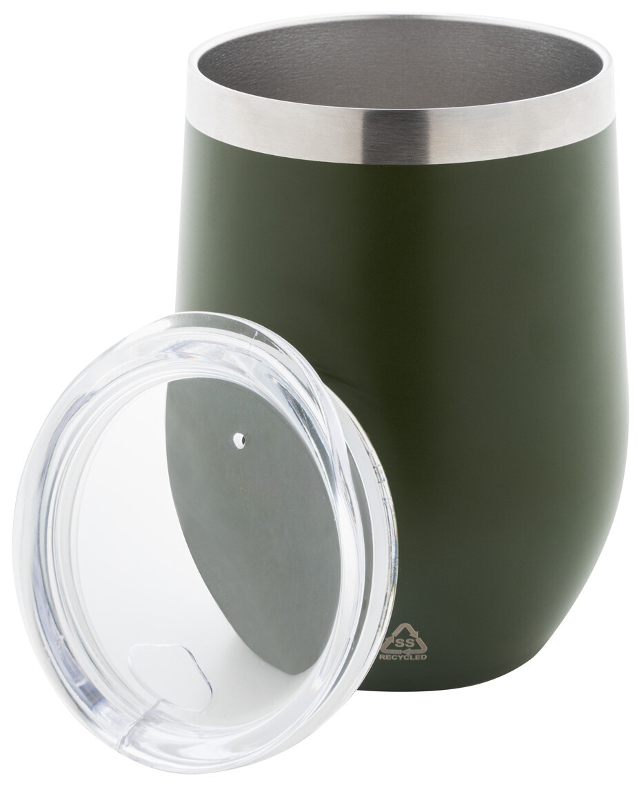 Dvoustěnný termo hrnek z recyklované nerezové oceli s plastovým víčkem na pití. 350 ml.