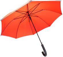 Automatický, větruodolný deštník s 8 panely a reflexním lemem. S kovovým rámem, sklolaminátovými žebry a EVA rukojetí. Pongee 190T RPET. S výrazným štítkem RPET. Pouze pro propagační účely se produkt nekvalifikuje jako osobní ochranný prostředek.