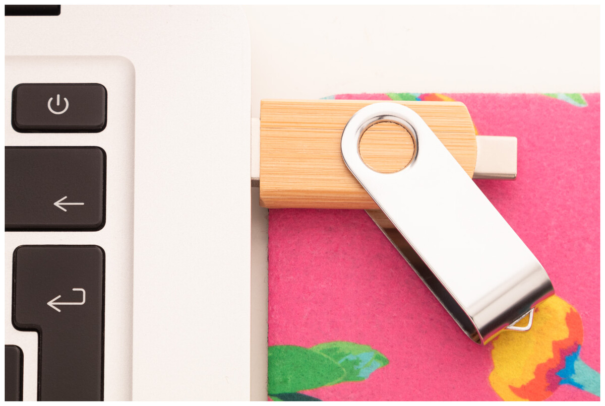USB flash disk Twist OTG v bambusovém a kovovém pouzdře s pamětí 4/8/16/32 GB. S připojením USB a USB-C. V kraftové papírové krabici. USB 2.0.