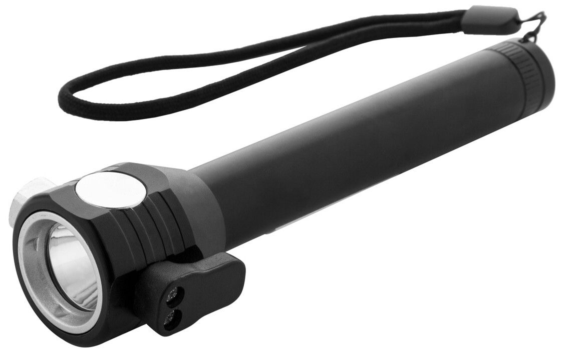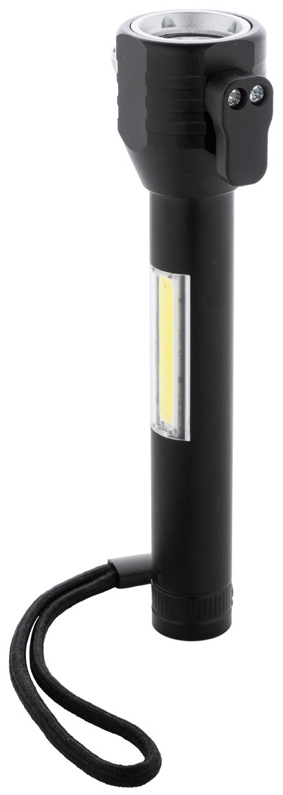 Hliníková baterka 3v1 s nouzovým kladívkem a řezačkou bezpečnostních pásů. S vestavěnou USB dobíjecí baterií (500 mAh), magnetem a popruhem. S vysoce výkonným COB světlem u písma a COB světlometem na boku. Včetně USB nabíjecího kabelu.