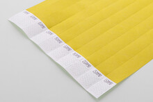 Jeden arch 19 mm širokých tyvekových náramků (10 ks) s lepicím bezpečnostním uzávěrem a jedinečným číslováním.