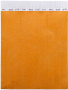Jeden arch 19 mm širokých tyvekových náramků (10 ks) s lepicím bezpečnostním uzávěrem a jedinečným číslováním.