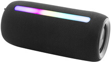 Bezdrátový reproduktor potažený polyesterovou tkaninou s vícebarevným LED světlem a popruhem na přenášení. Se 2 reproduktory, funkcí hands-free volání a vestavěnou dobíjecí baterií (1200 mAh). Včetně nabíjecího kabelu USB.