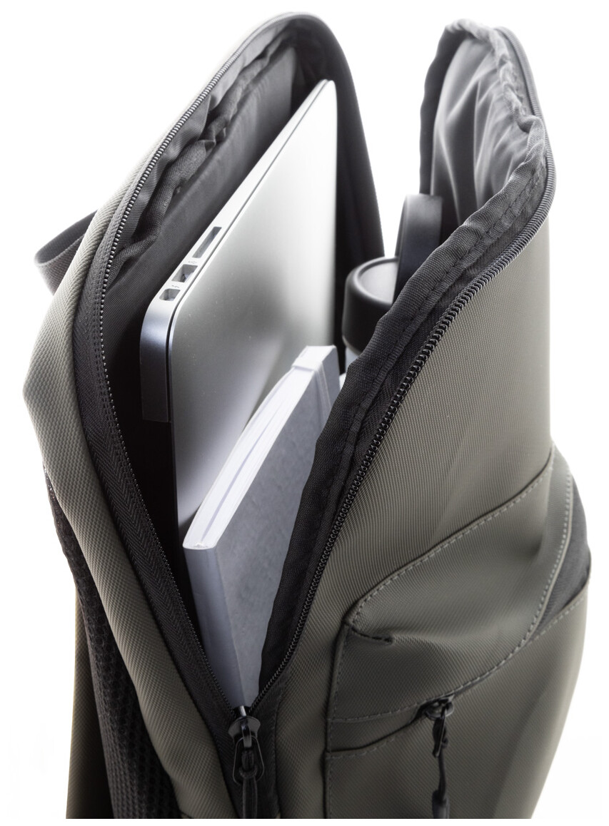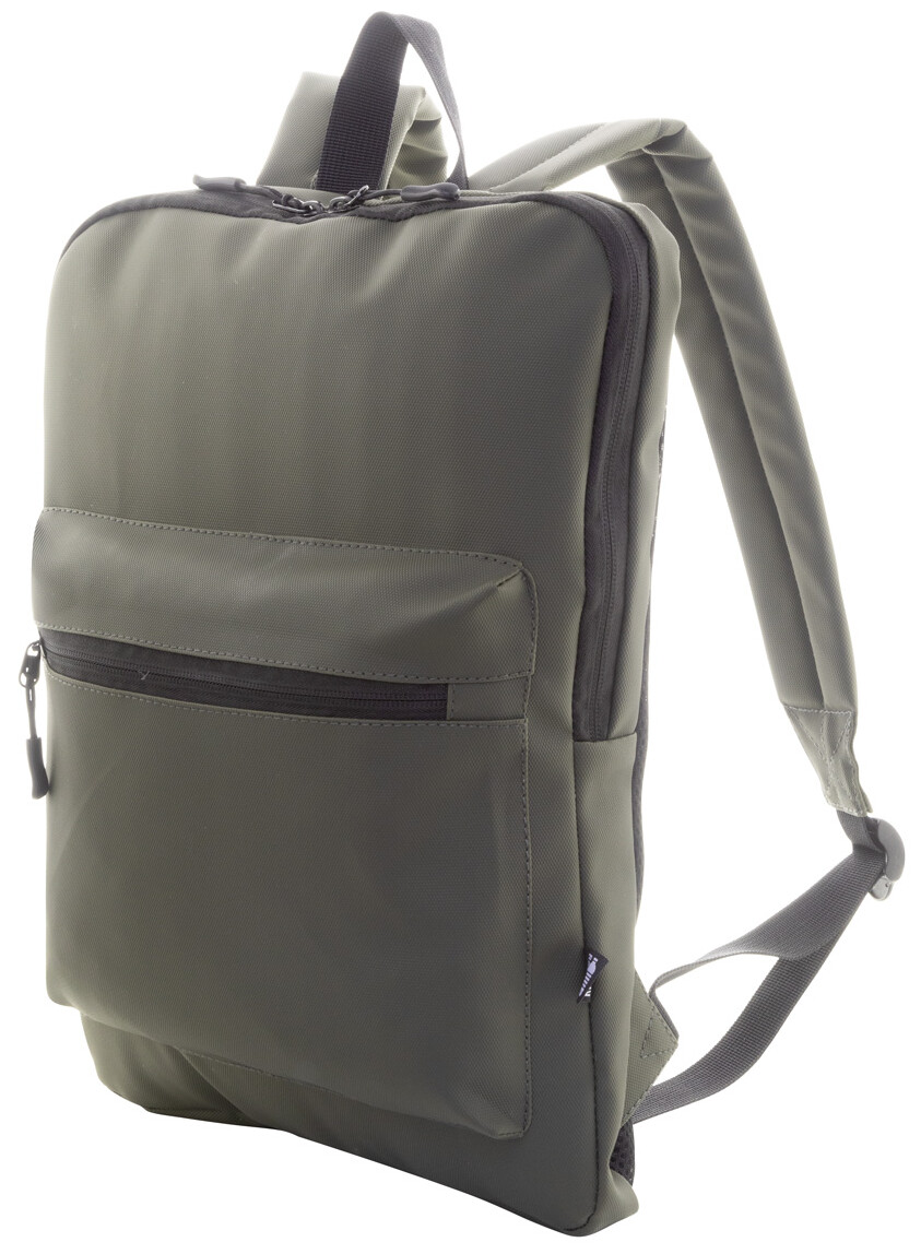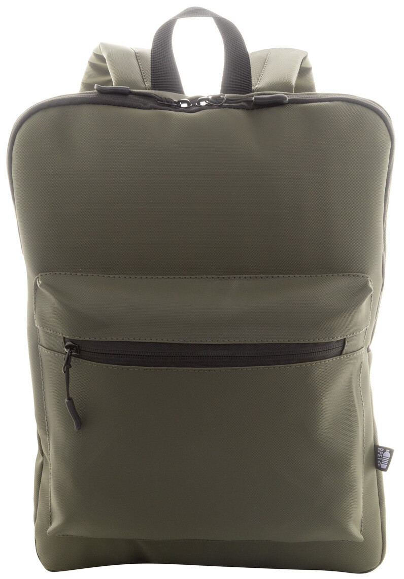 Vodotěsný tenký batoh na notebook RPET s přihrádkou na notebook (15") na zip a přední kapsou na zip. S polstrovanými zády a ramenními popruhy. Polyester 600D RPET potažený PU, s výrazným štítkem RPET.