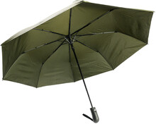 Velký automatický skládací deštník odolný proti větru s 8 panely v pouzdru odpovídající barvy. S kovovým rámem, sklolaminátovými žebry a ABS rukojetí s poutkem na ruku. Pongee 190T RPET. S výrazným štítkem RPET.