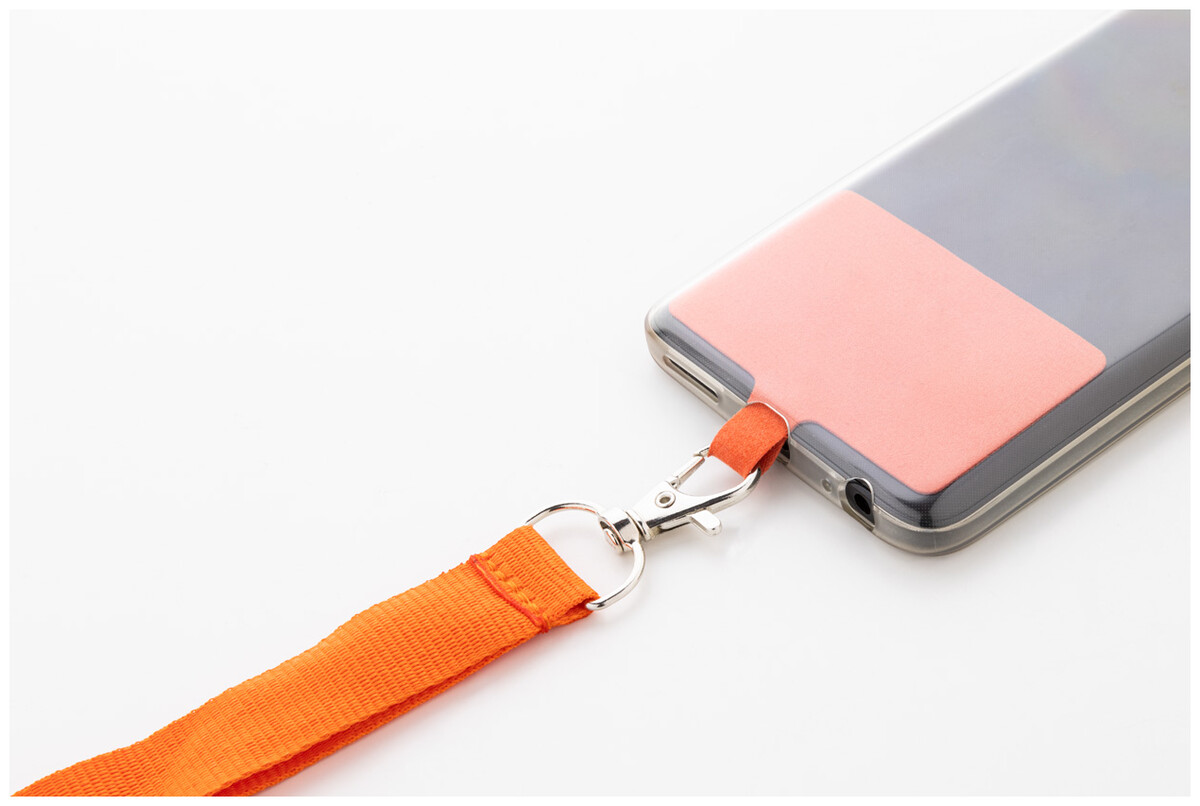 RPET lanyard na mobil s kovovou karabinou, bezpečnostní přezkou a vložkou na telefon ve stejné barvě.