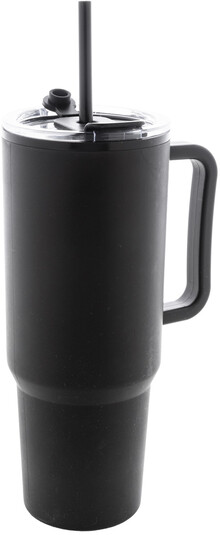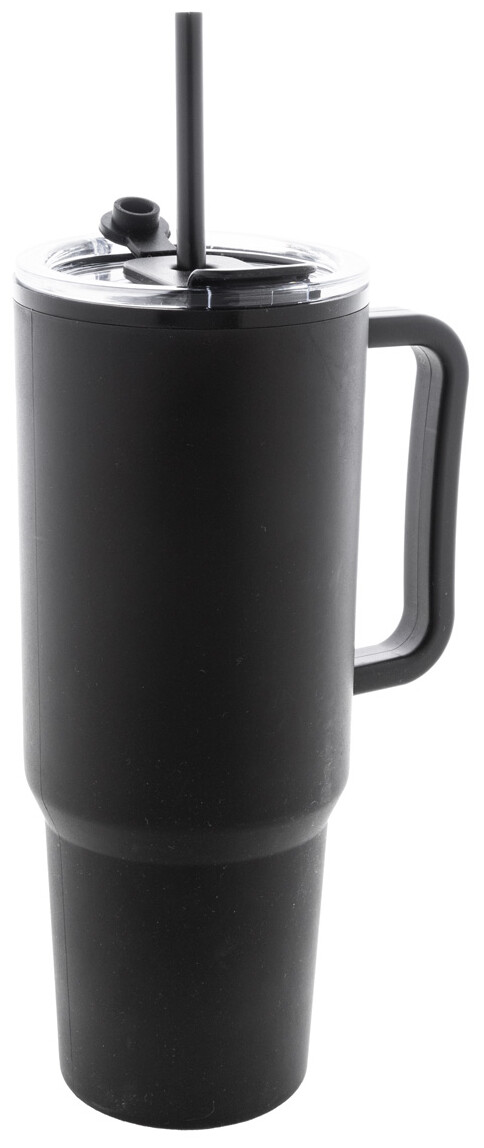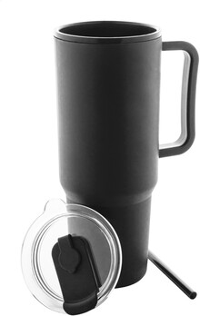 Dvoustěnný termo hrnek izolovaný PP plastem s víčkem na pití a brčkem. 1100 ml.
