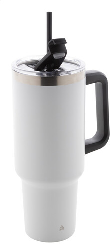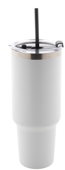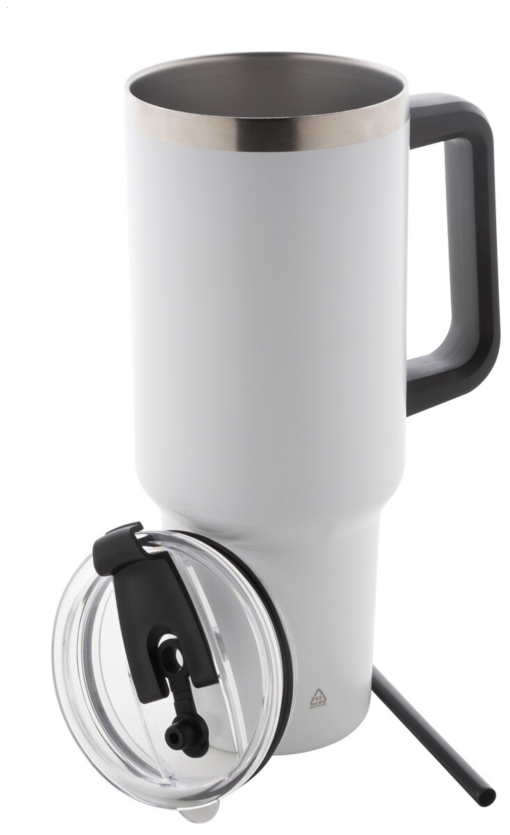 Dvouplášťový vakuově izolovaný termo hrnek z recyklované nerezové oceli s PS víčkem na pití a PP brčkem. 1200 ml.
