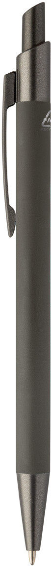 Kuličkové pero z recyklovaného hliníku s pogumovaným tělem a kovovými částmi. S modrou náplní.