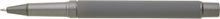 Elegantní kovový roller RIFLO SOFT v šedé barvě s tmavě šedými doplňky a pogumovaným povrchem. Náplň v rolleru píše modře.