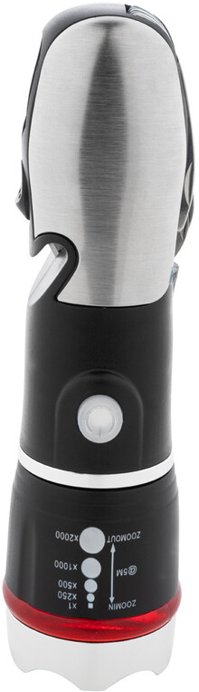 ABS a nerezová multifunkční baterka s nouzovým kladívkem, řezačkou bezpečnostních pásů a multifunkčním nářadím s 9 funkcemi. Se zoomovatelným LED světlem a 3 světelnými režimy. Funguje na 3 baterie AAA, bez baterií.