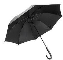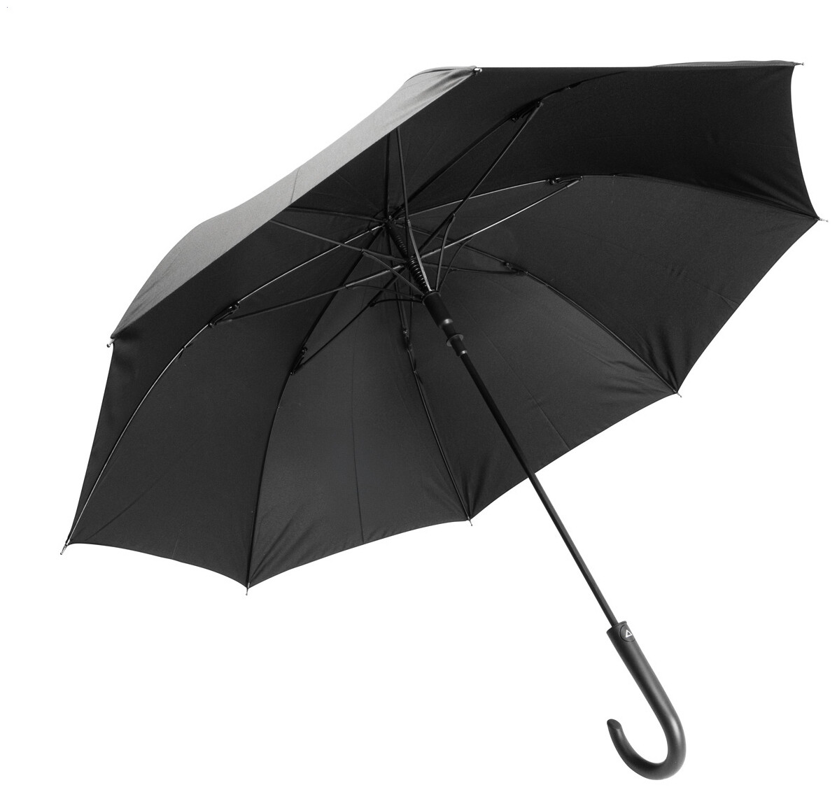 Automatický větruodolný deštník s 8 panely, sklolaminátovým rámem, kovovou tyčí a zakřivenou ABS rukojetí. Pongee 190T RPET. S výrazným štítkem RPET.